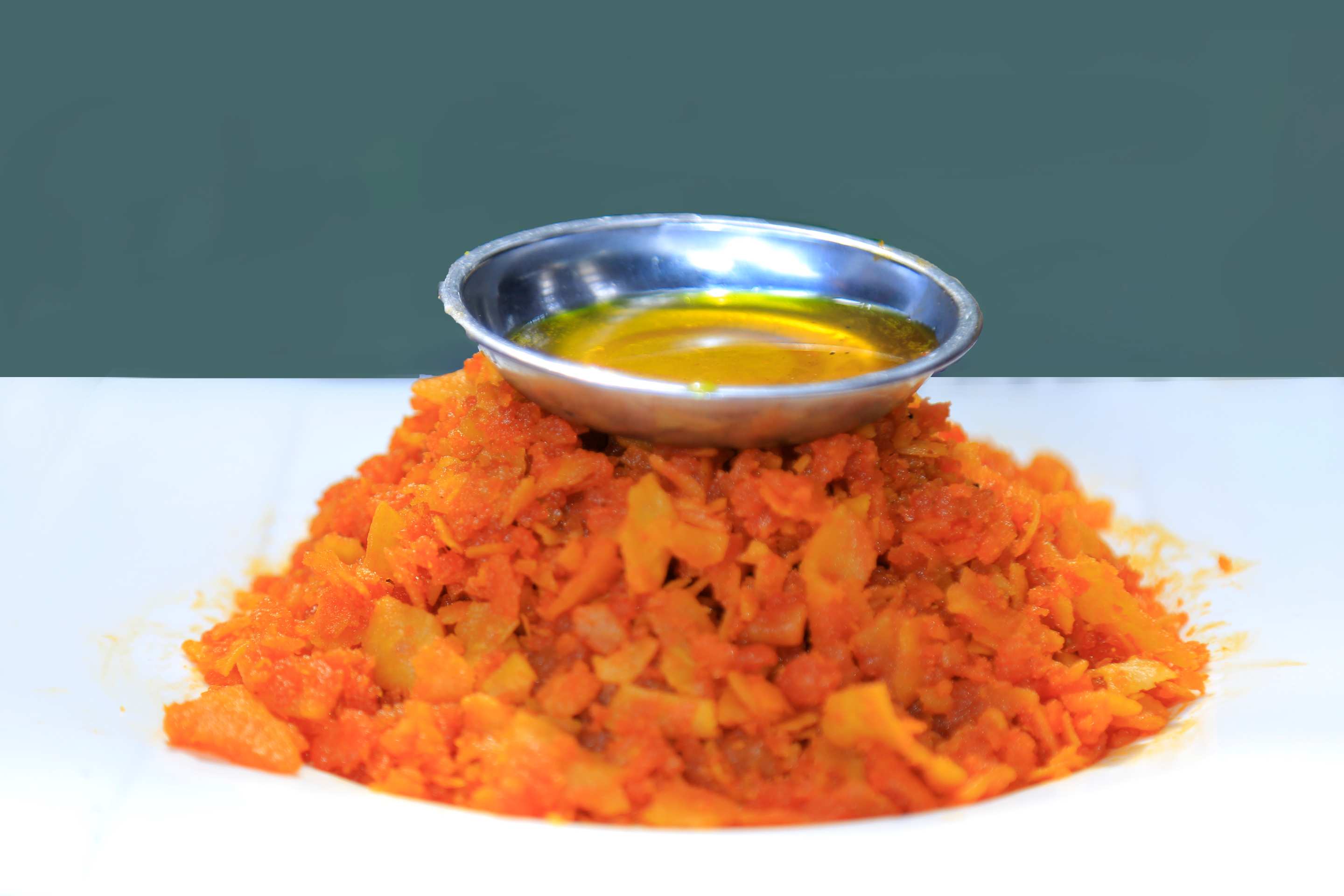 Lamb cubes sautéed with red pepper flavored in , garlic, tomato, onion, green pepper, local butter served rice with vegetable/spinach/ and egg